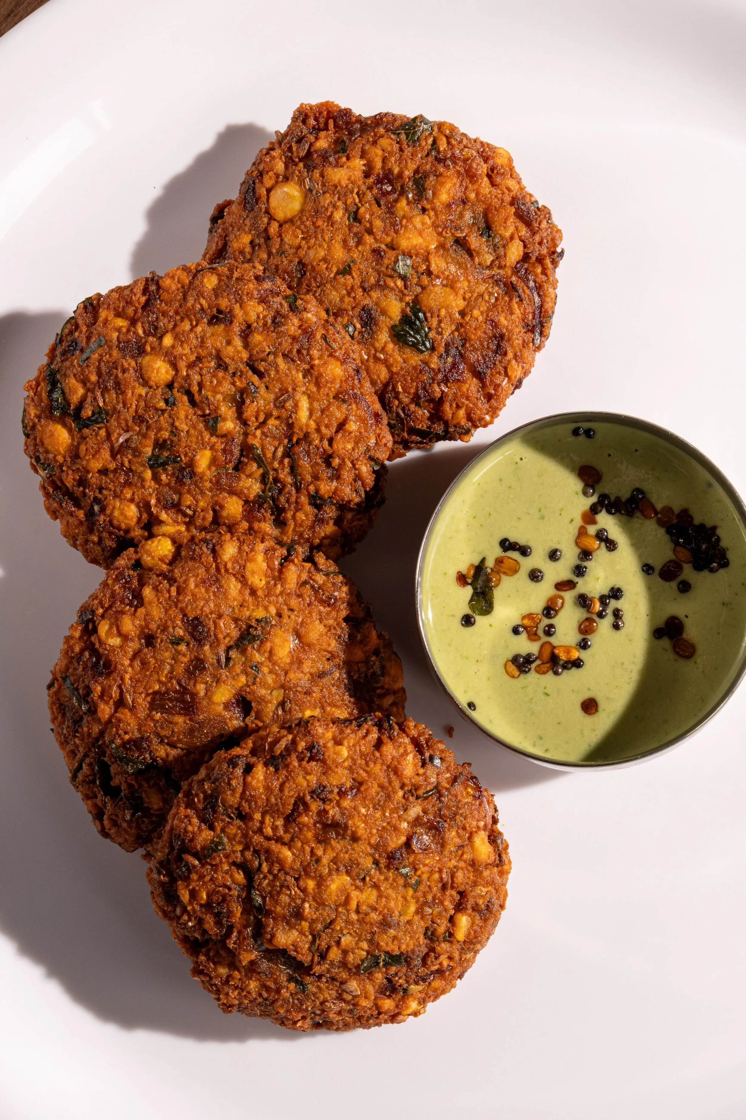 Crispy on the outside, soft inside. These golden lentil doughnuts are perfect with a dunk in warm sambar.